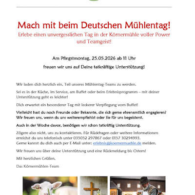 Wir laden dich herzlich ein, Teil unseres Mühlentag-Teams zu werden.