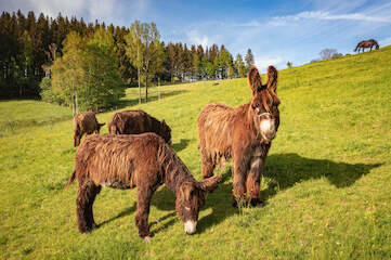 Nach einer möglichen Schnittnutzung des Grünlandes setzten wir Schafe, Esel oder Rinder bei der Nachbeweidung von Bergwiesen, vor allem an Steilhängen, ein.